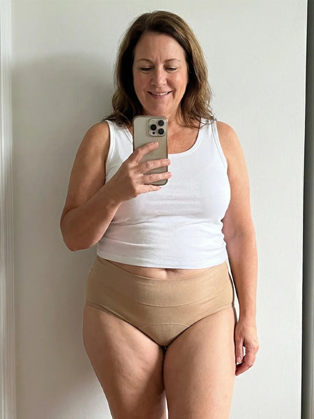 Ja. Ons incontinentieondergoed is ontworpen voor alle lichaamstypes, of je nu een vollere buik hebt, zachtere bovenbenen of bredere heupen. De zachte stretchstof vormt zich naar jouw lichaam zonder te knellen en zonder om te rollen.